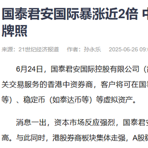 随着“以伊停战”,全球资本市场集体反弹。沪指6月24日放量上涨逾1%,重新夺回3400点整数关口。这几天大盘上涨的表面原因是客户将可在国泰君安国际平台直接交易加密货币、稳定币等虚拟资产。但这只是个导火索,很多逻辑共振,才是沪指近期走出“六亲不认步伐”的决定性因素。