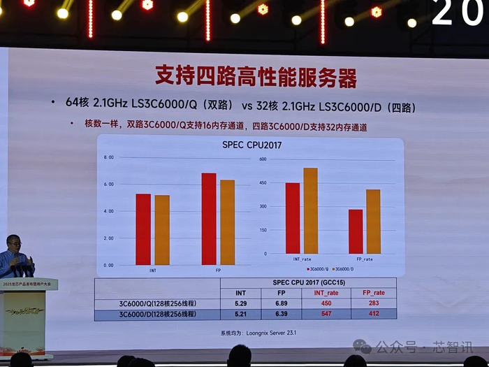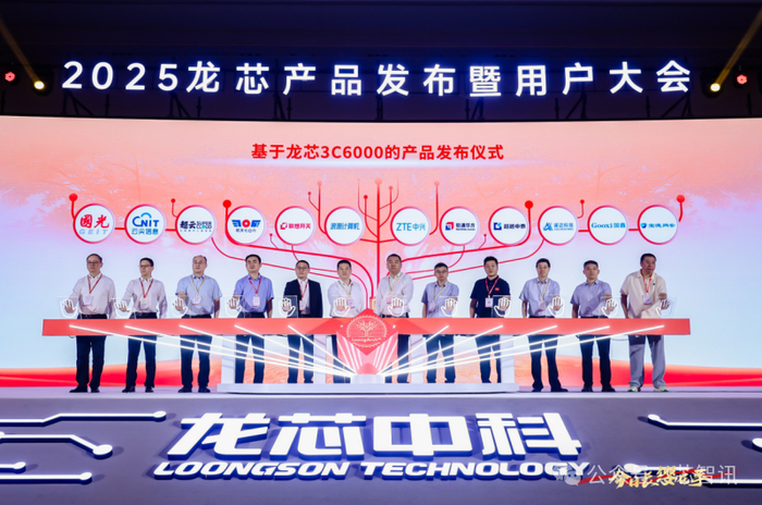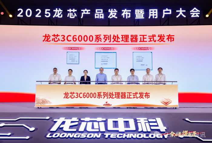 6月26日,“2025龙芯产品发布暨用户大会”在北京中关村国际创新中心举行。国产处理器厂商龙芯中科重磅发布了基于国产自主指令集龙架构(LoongArchTM)研发的服务器处理器龙芯3C6000系列芯片,最高支持128核256线程,性能对标英特尔第三代至强可扩展处理器。目前,已有超过40家厂商推出了基于龙芯3C6000系列的整机和解决方案。同时,龙芯中科还发布了工控领域及移动终端处理器龙芯2K3000/3B6000M芯片,以及相关整机和解决方案。
