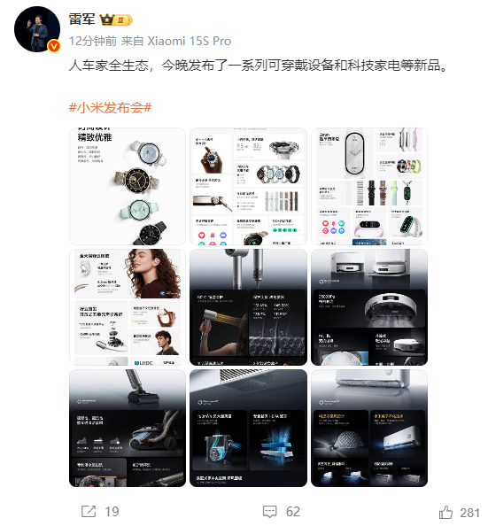 发布会公布了一系列可穿戴设备和科技家电等新品。