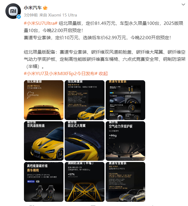 纽北限量版,定价81.49万元,车型永久限量100台,2025版限量10台,今日22:00开启预定。