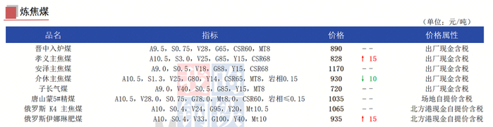 1、山西地区随时事故煤矿复产,产量逐步恢复;但内蒙乌海地区受环保通报影响,停产的露天煤矿继续增多,区域内供应端减量明显。另外近日下游低库存焦企对高性价比以及紧缺资源加大采购力度,部分中间环节也开始适当采购,原料供需结构稍有改善,昨日山西主流大矿竞拍涨价资源增多,产地部分畅销煤种也有小幅探涨,不过目前下游需求释放有限,原料端心态仍多谨慎,煤价主体依然偏稳。进口蒙煤方面,近日受内蒙地区供应下滑煤价反弹影响,部分下游焦企增加对蒙煤刚需采购,蒙5原煤暂稳于720元/吨左右。