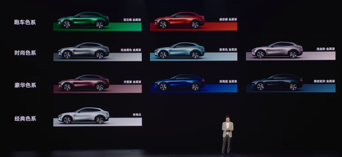 发布会上,雷军介绍小米YU7共有九种配色,除了上次公布的宝石绿、熔岩橙、钛金属和寒武岩灰四种,还增加了珍珠白、深海蓝、丹霞紫、影青色和流金粉五种配色。