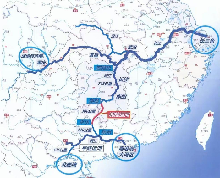 这样一来,同样能联通长江、珠江两大水系,也能让湖南“变身”南北水运大通道的航运枢纽,岳阳、长沙、湘潭、株洲、衡阳、永州等城市的港口地位也会一同“起飞”。
