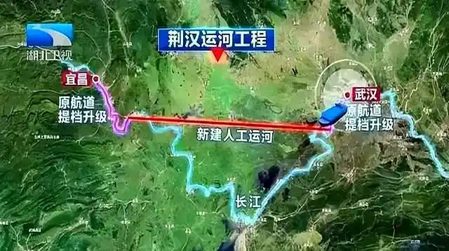 与前面那些主要依托现有河道开挖的运河不同,荆汉运河的规划非常大胆,原来的长江航道不用了,直接开挖一条新的!