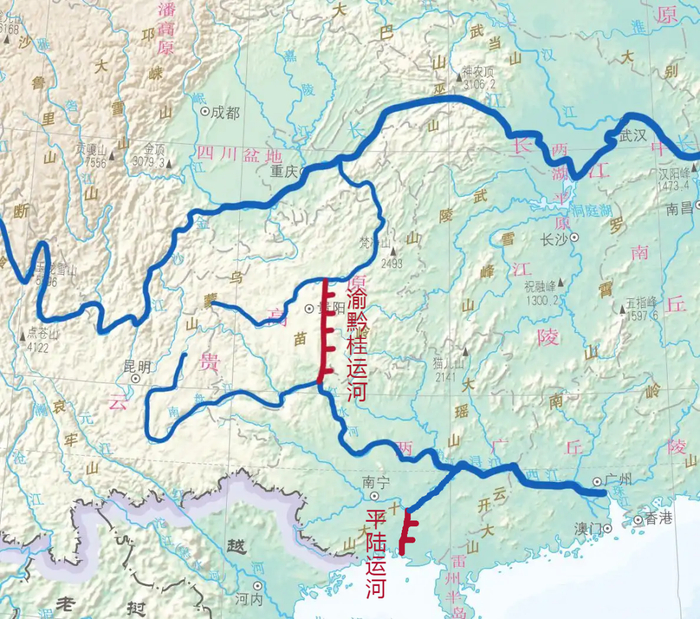 那么为啥广西要砸锅卖铁修运河呢?这和广西特殊的地理态势有关系。