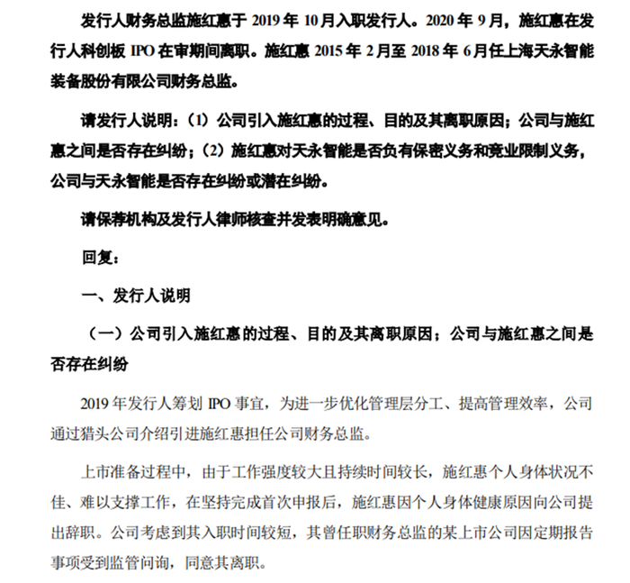 2020年12月,上交所在华依科技科创板IPO二轮问询中,要求公司说明引入施红惠的过程、目的及其离职原因。