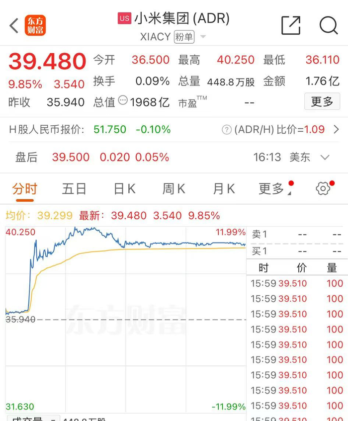 小米集团ADR大涨近10%,小米正式发布其首款SUV汽车小米YU7,开售后1小时,大定突破289000台。