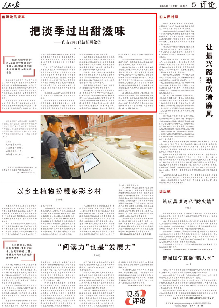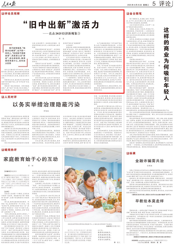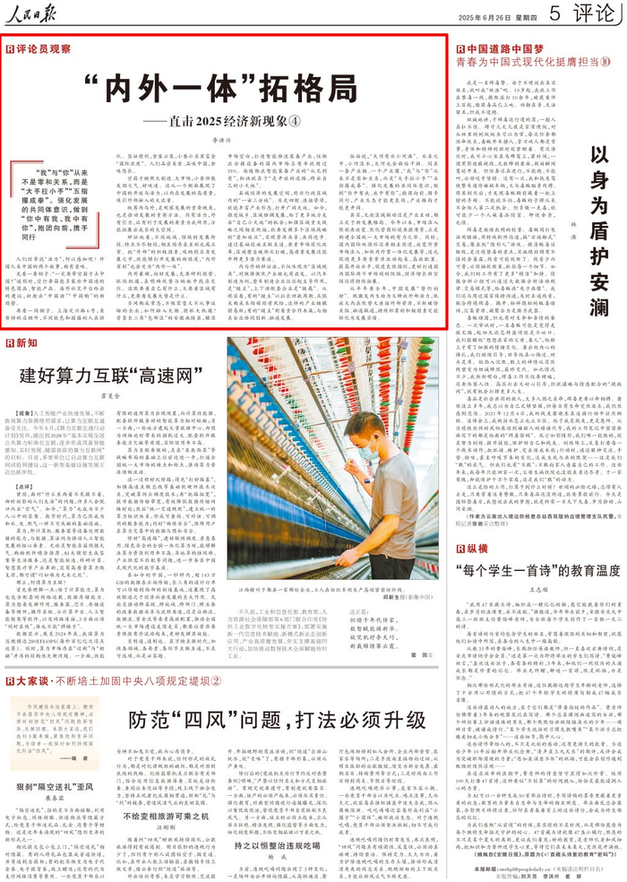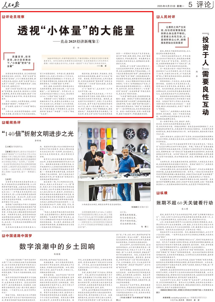 人民日报从6月23日起连续五天在评论版面刊发评论员观察,与读者一道感受“十四五”收官之年的经济脉动。