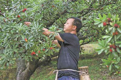 “现在是雨季,我们正忙着抢收杨梅。”刘启文抹了把汗,指着路边停放的货车说,最近村里可热闹了,天天都有四川、湖南、广西等地的收购商前来收购杨梅,“我家80%的杨梅都卖给了收购商”。