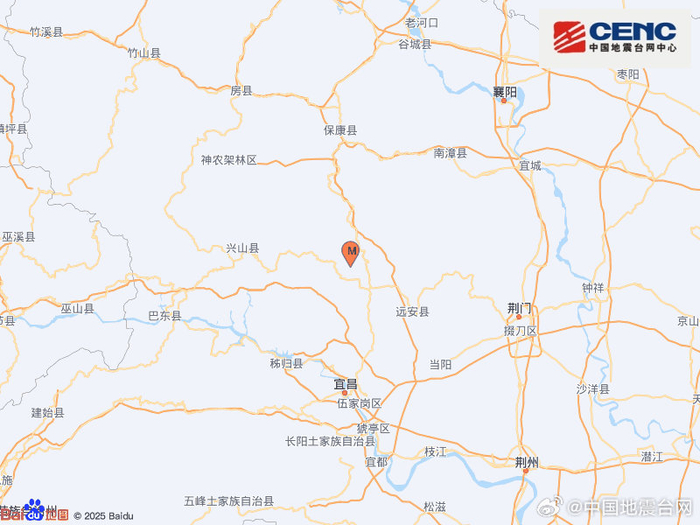 湖北宜昌市远安县发生3.4级地震,震源深度8公里 上观新闻 《上观新闻》官方账号 2025.06.2706:20 关注 中国地震台网正式测定:6月27日0时24分,在湖北宜昌市远安县(北纬31.29度,东经111.32度)发生3.4级地震,震源深度8公里。