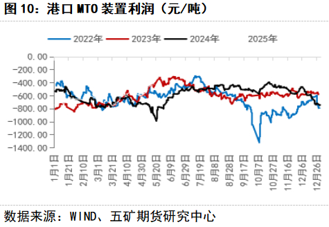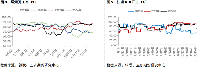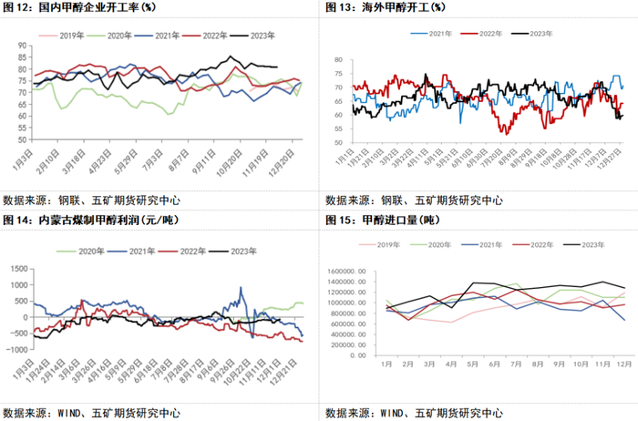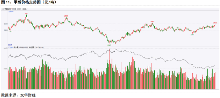 1-5月份上涨最主要的原因为海外装置开工低位,国内与伊朗商谈僵持,进口维持在低位水平,而下游刚需维持,港口库存持续维持在偏低水平,甲醇价格持续走强。5-9月份下跌主要由于前期甲醇上涨导致MTO利润出现大幅亏损,港口装置开始停车检修,下游负反馈导致甲醇价格见顶回落。4季度随着下游利润逐步改善,烯烃开工回升,需求好转,另外国庆节前在宏观政策预期推动下跟随整体商品出现明显走强,节后盘面大幅冲高之后快速回落,宏观情绪降温,四季度进入传统旺季,甲醇价格易涨难跌。