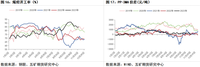 上半年进口持续不及预期,港口库存维持同期低位水平,港口基差与5-9价差持续维持偏强走势。下半年在国内高供应以及港口烯烃阶段性停车下,港口库存持续累至历史高位,1-5价差一度转为负值,现货端在高库存下持续偏弱,现货疲软持续压制近端价格走势。从历史来看,港口库存对于单边价格以及价差走势有较强的指导意义。