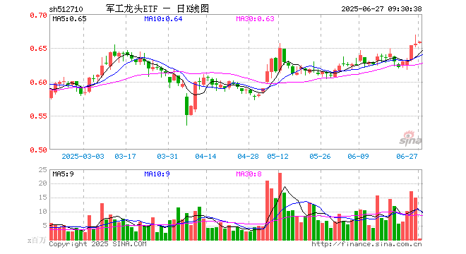 军工龙头ETF(512710)业绩比较基准为中证军工龙头指数收益率,管理人为富国基金管理有限公司,基金经理为牛志冬、王乐乐,成立(2019-07-23)以来回报为30.99%,近一个月回报为6.63%。