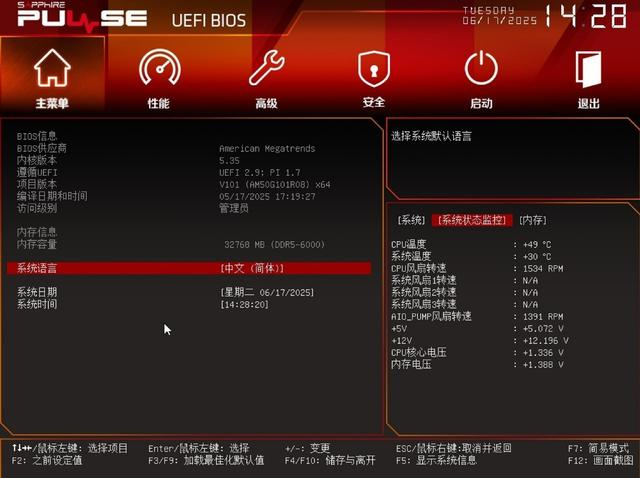2 蓝宝石PULSE脉动B850MPWIFI主板BIOS