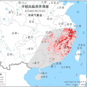 图1南方早稻高温热害预报(2025年6月30日至7月5日)