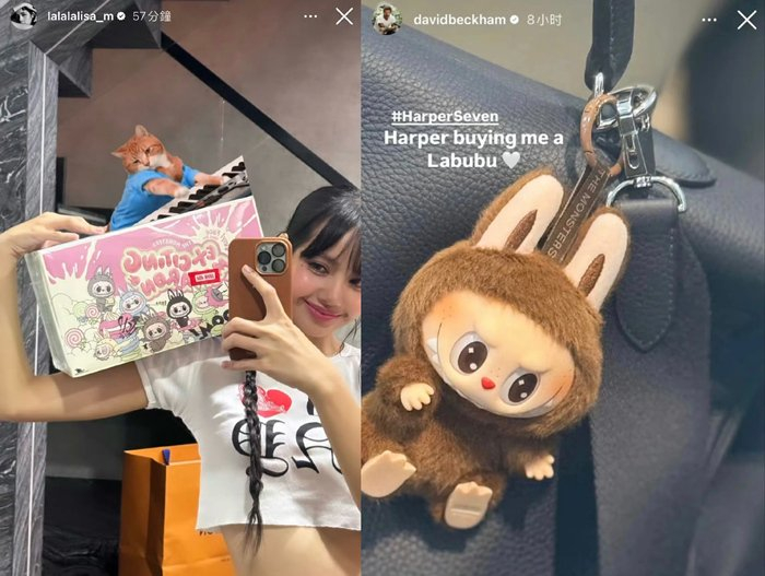 左:Lisa发布的Instagram;右:贝克汉姆发布的Instagram——女儿哈珀给我买的LABUBU