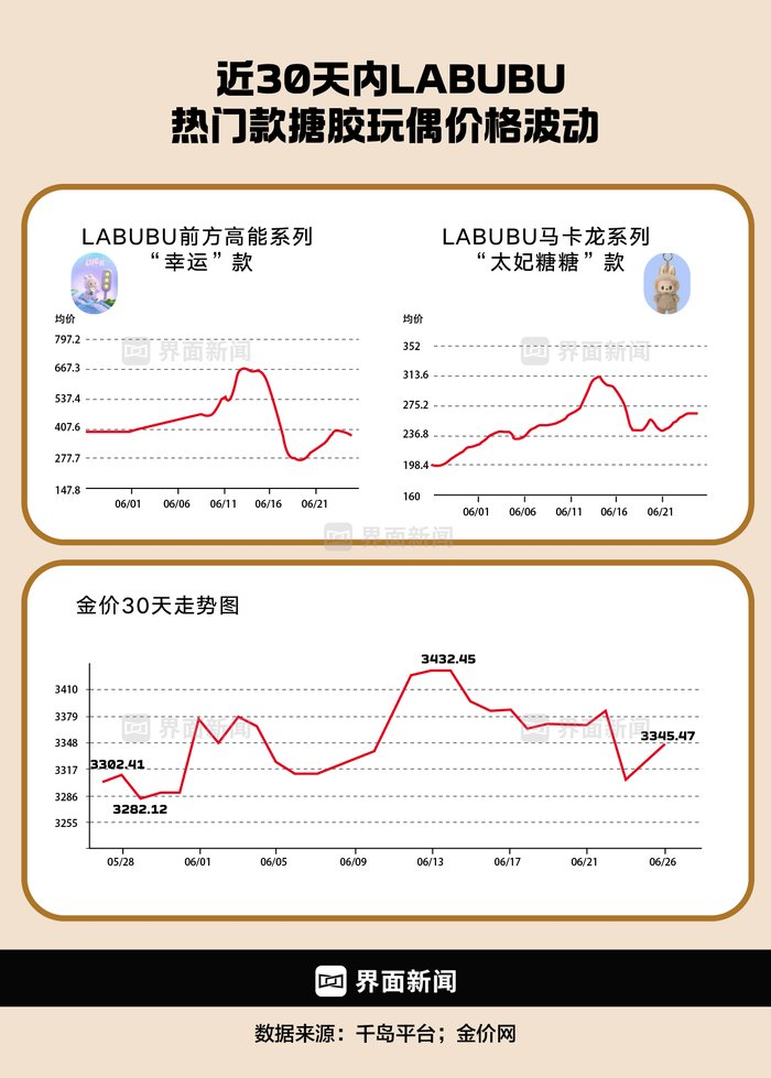 多款热门产品的二手市场价格应声下降,以LABUBU“前方高能”系列中的热门款“幸运”为例,6月13日千岛平台上成交均价为713元,6月19日成交均价为234元,但仍比原价99元要高。