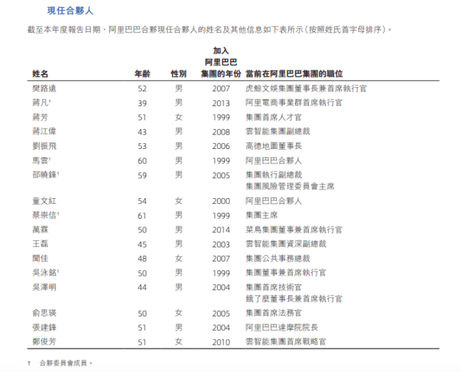 (阿里巴巴最新合伙人名单。图源:阿里巴巴集团2025财年年报)