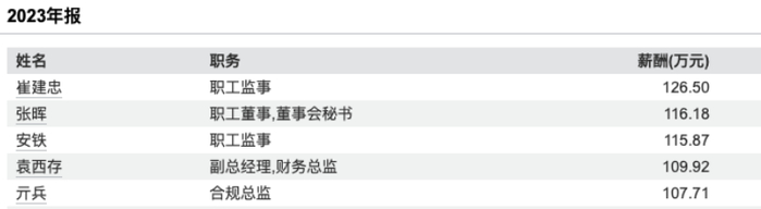 图片系中泰证券近两年部分高管薪酬情况