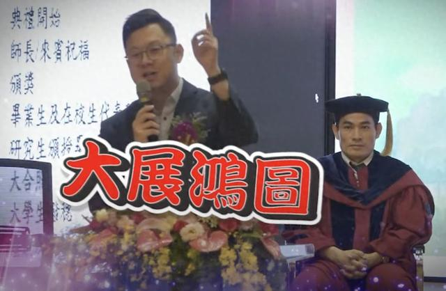 近日,台中市数位发展局局长林谷隆在一场毕业典礼致辞中提及大陆网络“神曲”《大展鸿图》,引发争议。(视频截图自台湾媒体Nownews新闻网报道)