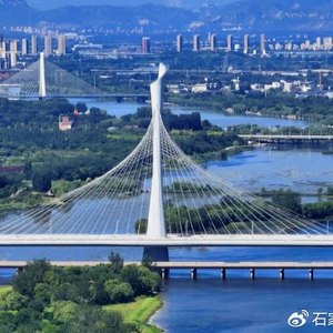 石家庄市复兴大街滹沱河大桥与太平河学府桥交相辉映。摄/张震