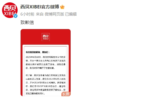《情况说明》显示,经了解,照片发布者为西贝杭州滨江龙湖店已离职员工贺某,经沟通贺某已经删除相关照片。西贝对于贺某在顾客服务中的不当行为表达深深的歉意。西贝表示,在全国所有门店西贝严禁未经授权发布顾客照片,更禁止员工私下拍摄顾客照片、留存顾客信息。西贝将组织全国门店全体员工开展顾客隐私保护专项培训,明确违规行为的处理标准与法律后果。