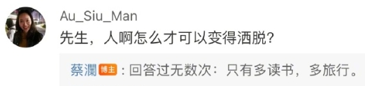 蔡澜每年在微博开放评论区回复网友提问,已成为独特的文化现象。蔡澜常以简短直白的语言回应网友困惑,被网友称为“毒舌式人生指南”。