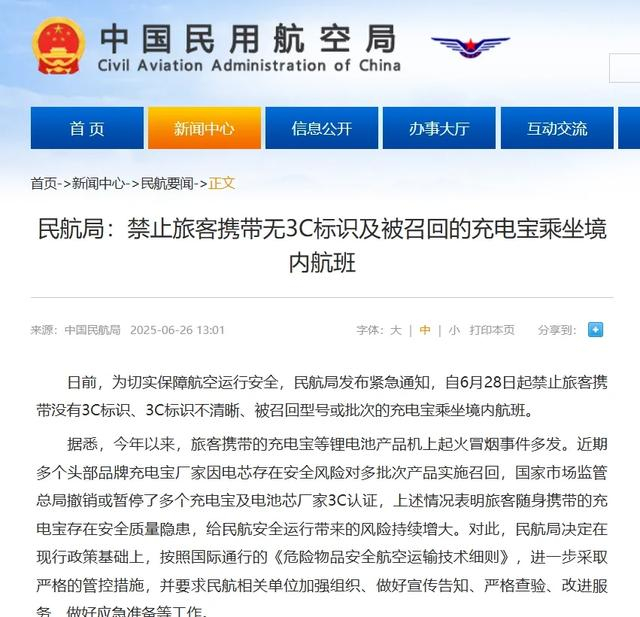 民航局出台充电宝乘机新规