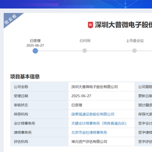 上海证券报记者查询深交所官网发现,6月27日,深圳大普微电子股份有限公司(以下简称“大普微”)作为深市首个未盈利企业首发申请获深交所受理。