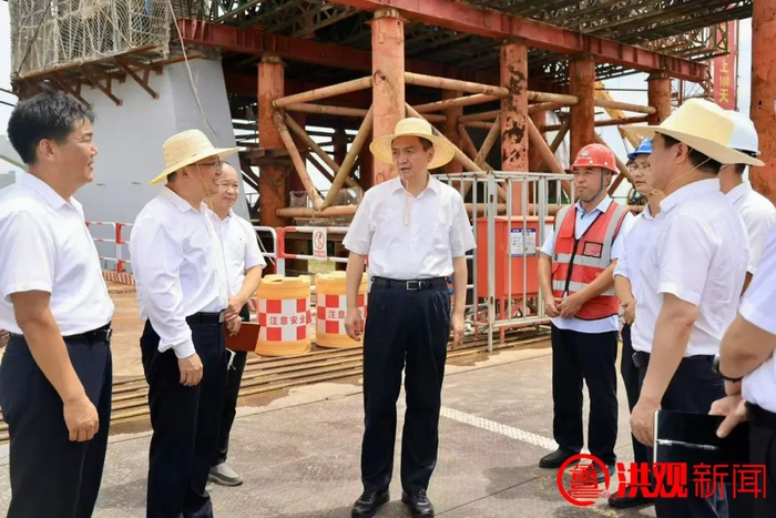 6月27日,省委常委、南昌市委书记、赣江新区党工委书记李红军深入一线,调研将军洲大桥建设情况。市委常委、市委秘书长赵捷参加。