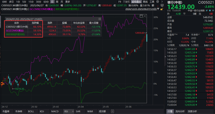 2024年以来,银行可以说独领风骚,成为A股市场最亮眼的板块,中信一级行业累计涨幅达66.10%,涨幅超过COMEX黄金(59.03%),相比沪深300超额收益达51.8%。