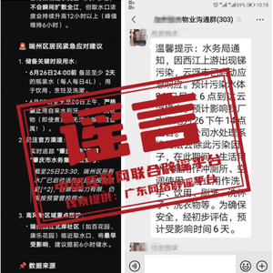 辟谣:广东肇庆、云浮通报目前水质正常、供水正常