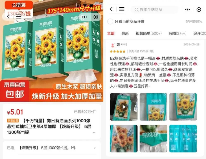 经过这次纸巾的惊魂消费,老吴再点开电商平台的抽纸页面时,不再仅盯着那行醒目的价格数字,而是仔细翻看商品详情页,原生木浆含量、有无FDA食品级认证,甚至包装是否采用可降解材料,都成了他关注的重点,而老吴的改变代表着中国更多生活用纸消费者的安全意识觉醒。
