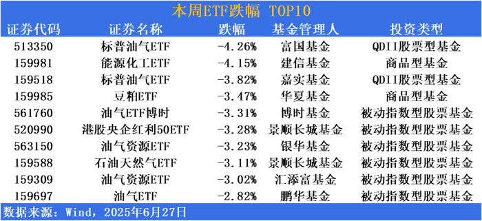 跌幅方面,油气类ETF获利了结