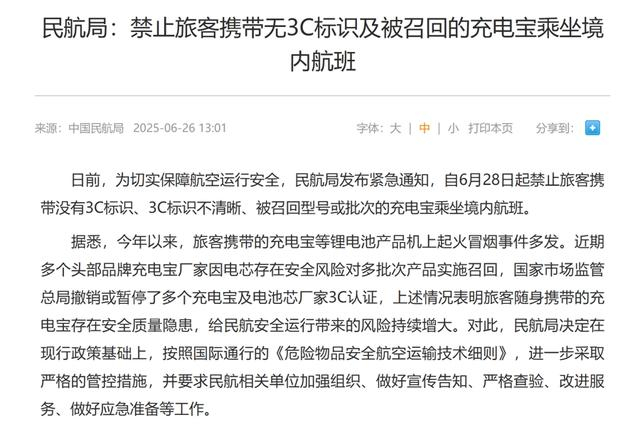 原标题:《6月28日起,没有3C标识的充电宝禁止带上境内航班,这些细节要搞清》