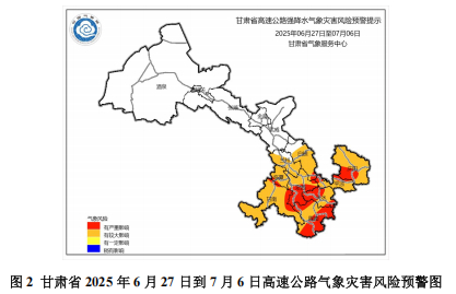 记者6月27日从省气象局获悉,近期甘肃进入多雨时段,具有对流性强、小时雨强大、累积雨量大等特点,各类灾害气象风险高。27日,祁连山区及河东大部仍有强对流天气,最大小时雨强可达30至50毫米。29至30日,定西、陇南、天水、平凉、庆阳等市局部地方有暴雨,最大累积雨量80至120毫米,并伴有短时强降水,最大小时雨强40至70毫米。7月2至3日,河东大部有小到中雨,临夏、甘南、定西、陇南、天水、平凉、庆阳等市州部分地方有大到暴雨,最大累积雨量60至90毫米,并伴有短时强降水。