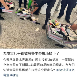 近日,社交平台上不少网友反映,自己带的充电宝不允许带上飞机,网友分享的现场图片显示。成筐的旅客充电宝在机场被拦下,“没有3C标志的都上不了飞机”。