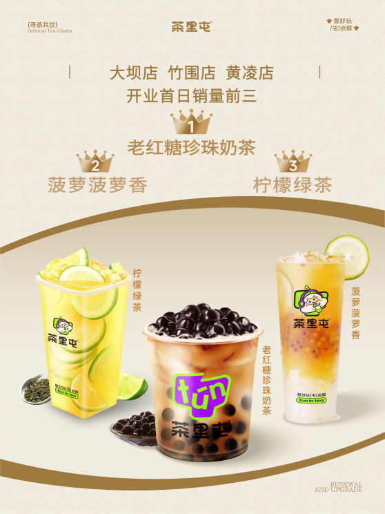 作为行业“黑马”,茶里屯以产品创新与精准营销驱动高质量扩张。茶里屯自2017年创立以来,便以“现制奶茶 + 休闲小吃”的复合型经营模式独辟蹊径,在激烈的市场竞争中走出了一条差异化发展道路。品牌研发团队深度调研华南消费者口味偏好,在推出“老红糖珍珠奶茶”“菠萝菠萝香”“柠檬绿茶”等爆款饮品的同时,搭配特色小吃,为消费者打造一站式休闲消费体验,不仅成为拉动复购的核心增长点,还构建起与传统茶饮品牌的竞争壁垒。