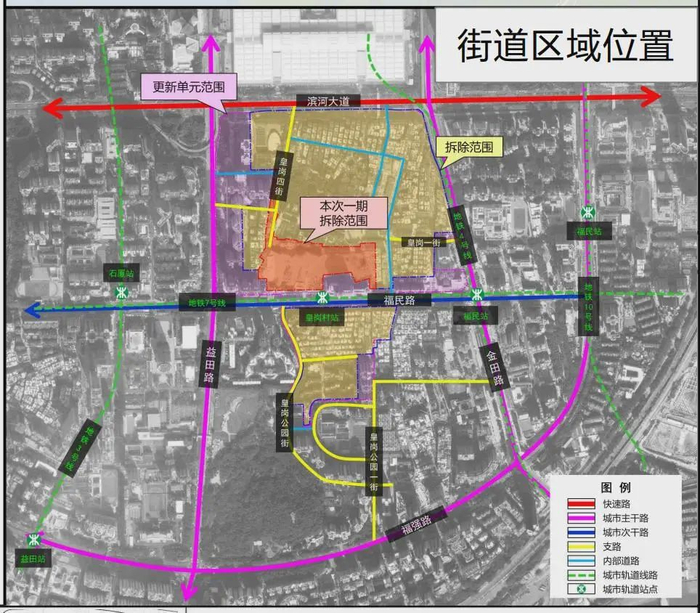 皇岗村改造项目位于福田福民路与皇岗二街交汇处西北角,紧邻7号线皇岗村站。