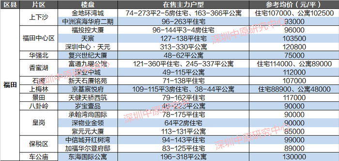 皇岗片区就有住宅项目:承翰湾尚国际、深物业金领;公寓项目:紫元元大厦。