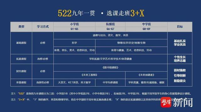 当天的发布会现场,中学部武和平校长重点解读了初中办学方案以及课程设置。“522 学制”即为小学5年、衔接2年、初中2年,六年级和七年级整合设 "小初衔接探究课",七年级启动物理实验进阶项目;八年级、九年级则是中学段,用这样一个完整的学制帮助孩子更好的实现小初衔接。“3+X选课”中,对数学、英语、物理三门在中考主要拉分的学科实施动态分层选课走班,“x”指利用延时服务对四门主科选课。整个初中课程体系以 "基础课程保底、拓展课程选学、探究课程创新、荣誉课程拔尖" 为框架,其中 "522学制" 破解传统学段断档问题,"3+X 选课" 则让数学、英语等学科按学力分为基础 / 提升 / 拔尖三层,每学期动态调整。
