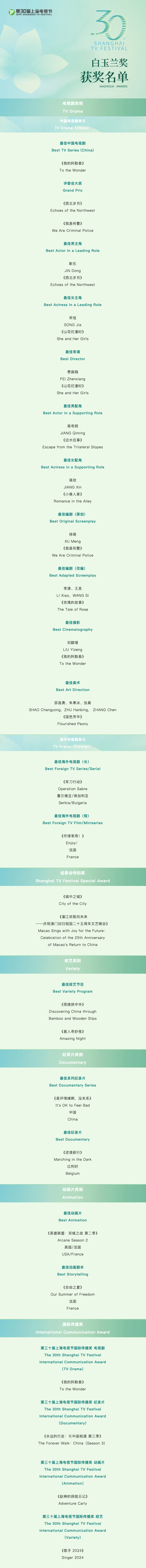 第30届上海电视节白玉兰奖揭晓:《我的阿勒泰》问鼎最佳中国电视剧奖