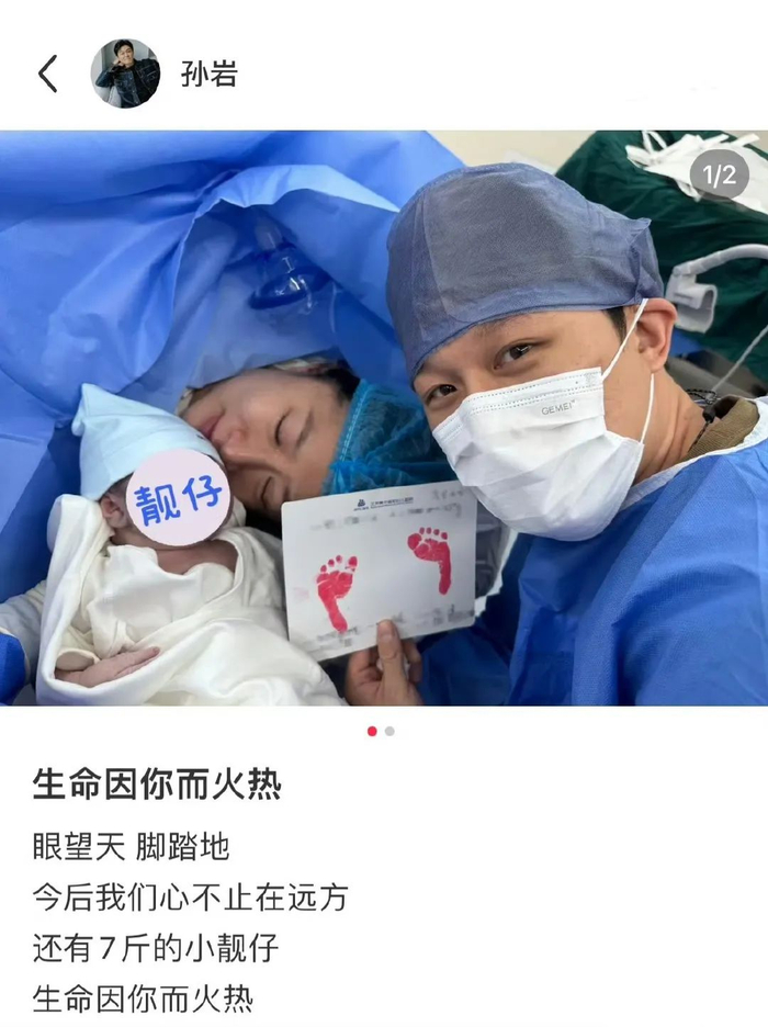 近日,演员孙岩发文晒照官宣儿子出生,“眼望天脚踏地,今后我们心不止在远方,还有7斤的小靓仔,生命因你而火热”。