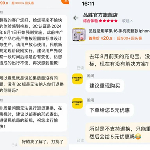 品胜客服表示,对于去年8月前无3C标识的产品,建议消费者重新购买,下单可给5元优惠。