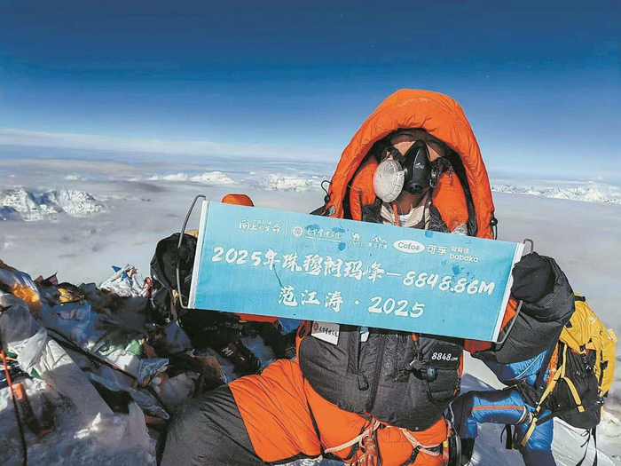 “五味杂陈。”范江涛用这个词形容站在世界最高峰的感受。他没有太多的欣喜,只有卸下重担的平静。