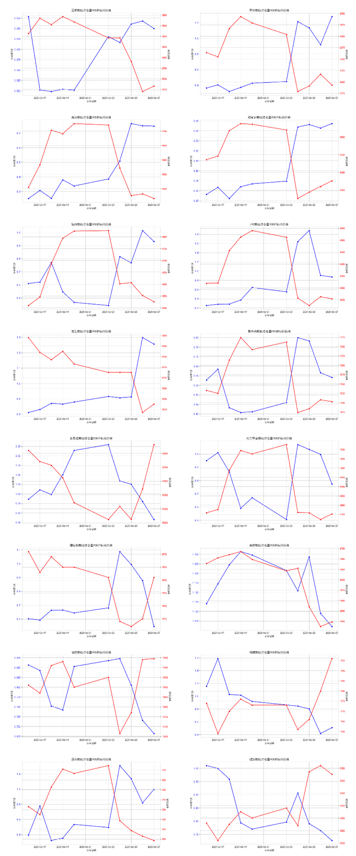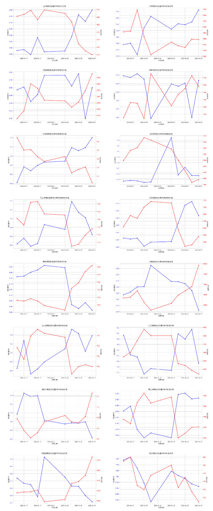 本周,商品期权市场情绪表现复杂多变,导致数据来看波动较大。从持仓量PCR的变化来看,可以发现以下几个关键点: