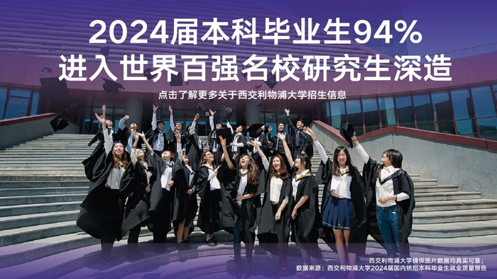 据西交利物浦大学2024届国内统招本科毕业生就业质量报告显示,毕业生的毕业去向落实率高达93.39%。在3769名毕业生中,选择升学的有3354名学生,其中,19人获得直博资格,3324人出国出境攻读硕士学位,还有11人选择国内读研。在选择出国出境攻读硕士的毕业生中,42.90%被世界排名前十的知名学府录取,83.63%被世界排名前五十的大学录取,93.56%被世界排名前百的大学录取。