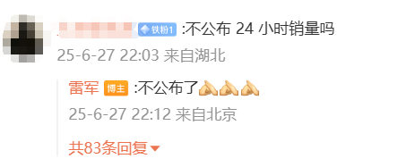 雷军还确认,不公布YU7的24小时销量了。