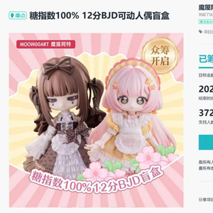 比如,6月10日,有一款名为“糖指数100%”的12分BJD可动人偶盲盒产品在摩点完成众筹,筹集资金约870.45万元。