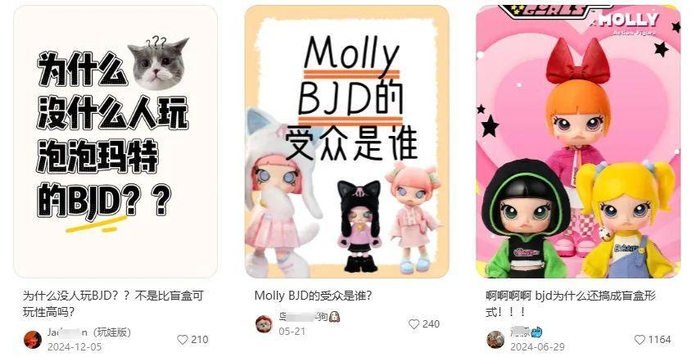 “BJD”这个品类赛道,相比盲盒摆件、搪胶毛绒等都有着较高的门槛。甚至,在小红书等平台,我们不难发现用户对泡泡玛特等大厂推出“BJD”的质疑。